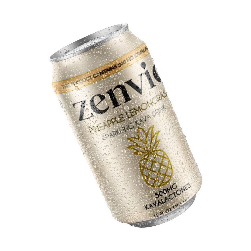 A lightly carbonated kava beverage designed for deep calm and mental clarity—without the compromise. ZENVIE blends 500mg of noble kavalactones with bright lemongrass and juicy pineapple for a clean, balanced experience. No alcohol. No hangover. Just pure ease.